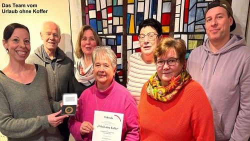 Foto: Das „Urlaub ohne Koffer“-Team freut sich sichtlich über den Preis und plant schon an der nächsten Ausgabe.
