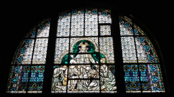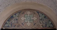 Die Ausmalung ist ganz auf das Fundament unseres Glaubens, auf Christus, den Namensgeber unserer Kirche, ausgerichtet. Und so setzt sich die Darstellung von Pflanzen und Blumen überall fort: in den Fenstern, an der Brüstung des Chores, am Treppengeländer zur Kanzel.